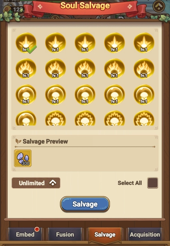Eingebettete Seelen gewähren Bonusattribute. Du kannst Slots freischalten, indem du höhere Level in der Kriegsherrenprüfung abschließt. Auf dem Einbetten-Bildschirm kannst du Seelen sogar mit Seelenessenz verbessern, um ihre Attribute deutlich zu steigern.